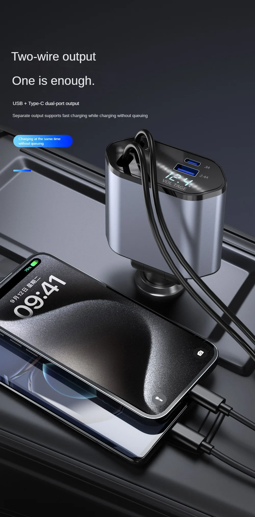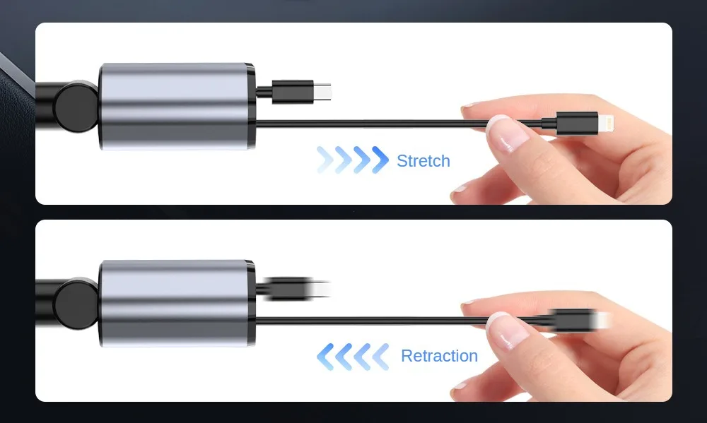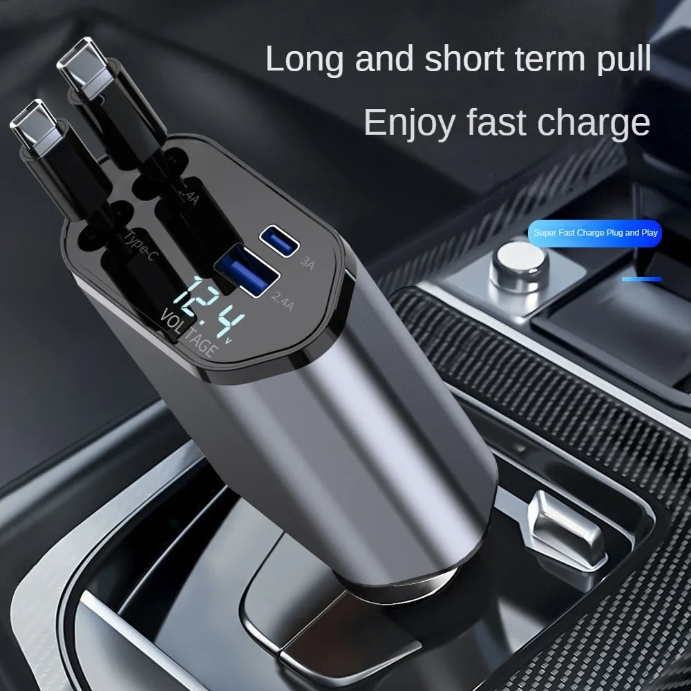 Cargador de coche retráctil 4 en 1 de carga rápida, 120 W